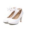 Women Ankle Strap Spike High Heels Bow Platform Round Toe Pumps Glossy Patent Leather Summer Autumn Sweet Lolita Shoes