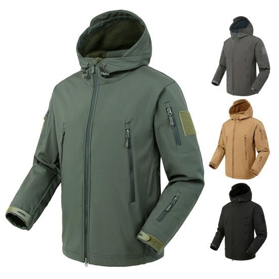 Versatile design: Men's long-sleeved hooded jacket in a solid color with zipper closure and multi-pocket design for enhanced convenience outdoors.