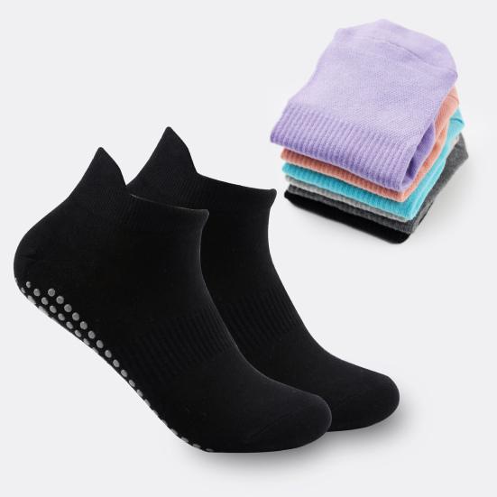Introducing our floor socks, crafted with a blend of 80% cotton, 15% acrylic, and 5% spandex for ultimate comfort and breathability during workouts. Specifically designed for women, these Pilates grip socks feature a thickened sole for enhanced softness and cushioning to alleviate exercise-induced stress. The inclusion of arch support ensures reduced foot pressure and added stability.