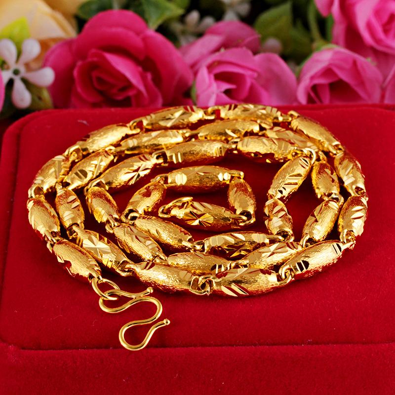 Simulation 24k Gold Chain Sand Gold Olive Bead Necklace Men's Bold 999 Frosted Necklace — buy online with free worldwide shipping!