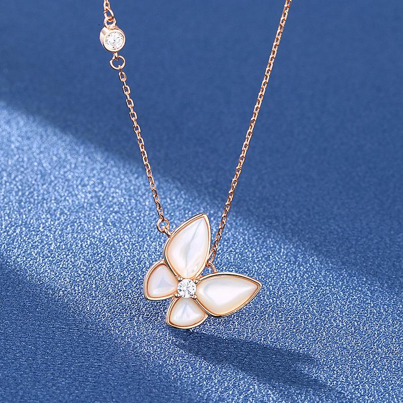 Sterling Silver S925 Moissanite Butterfly Necklace White Shell Clavicle Chain Plating Champagne Gold Necklace — buy online with free worldwide shipping!