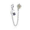 Silver 925 Zirconia Butterfly Flower Crown Safety Chain Charm Bead Fit Bracelet Pendant DIY Jewelry For Women