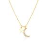 925 Sterling Silver Gold Zircon CZ Moon Star Pendant Charm Long Chain Necklace Women Wedding Jewelry Crystal Luxury