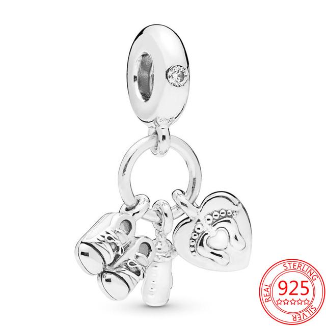 Real 925 Sterling Silver Baby Bottle and Shoe Dangle Charms Fit Original Fashion Bracelets Exquisite Gifts — buy online with free worldwide shipping!