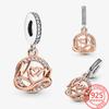 Real New Rose Gold Heart Padlock Double Charm Fit Fashion Snake Bracelet 925 Sterling Silver Charms Jewelry Girls Gift Making