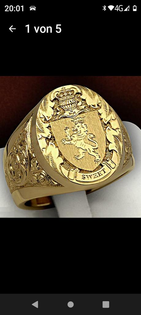 Crown Lion Shield Badge Ring Europe and America Copper Plated Gold Plated Royal Seal Men's Ring Fashion Elegant Accessories — buy online with free worldwide shipping!