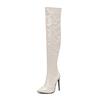 Women Patent Leather Over the Knee Boots Purple Stiletto High Heels Shoes Red Pointed Toe Warm Lady Sexy Party Thigh Boots