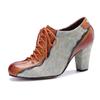 Johnature Fashionable Lace Up High Heels Retro Genuine Leather Patchwork Women's Shoes