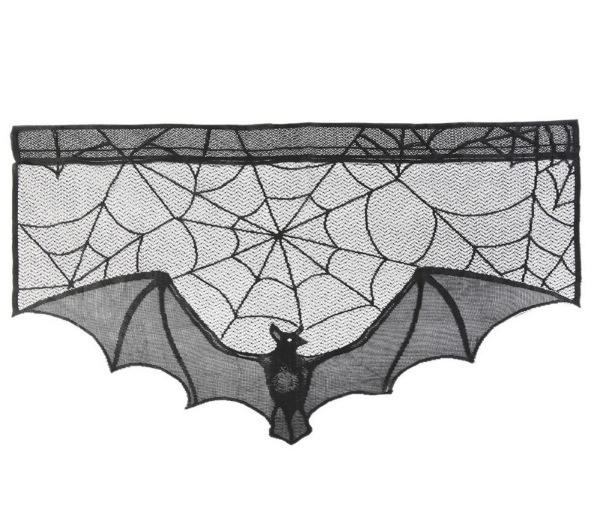 Halloween Curtains 95*57cm Black Lace Spider Web Bat Curtains Halloween Door Curtain Decoration