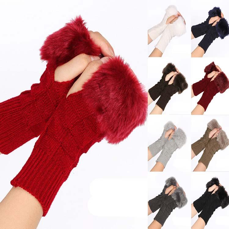 Autumn/winter Medium Length Knitted Gloves Half Finger Computer Gloves Warm Imitation Rabbit Gloves — buy online with free worldwide shipping!