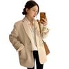Women Suit Coat Lapel Long Sleeve Single Breasted Suit Jacket with Pockets Solid Color Loose Fit