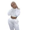 Features: Embrace casual elegance with this two-piece set that includes a stylish long-sleeved cropped hooded top paired with elastic-waisted trousers. The slim fit design accentuates your curves while providing utmost comfort for all-day wear. Versatile and chic, mix and match the pieces with booties or sneakers for a trendy look.