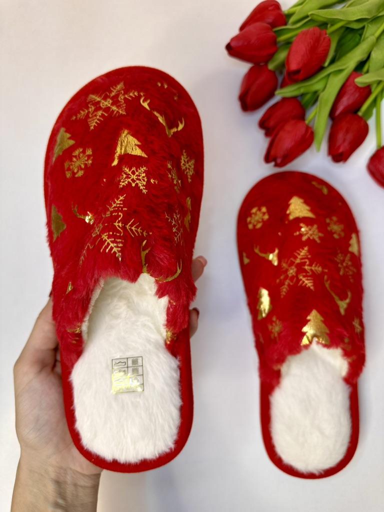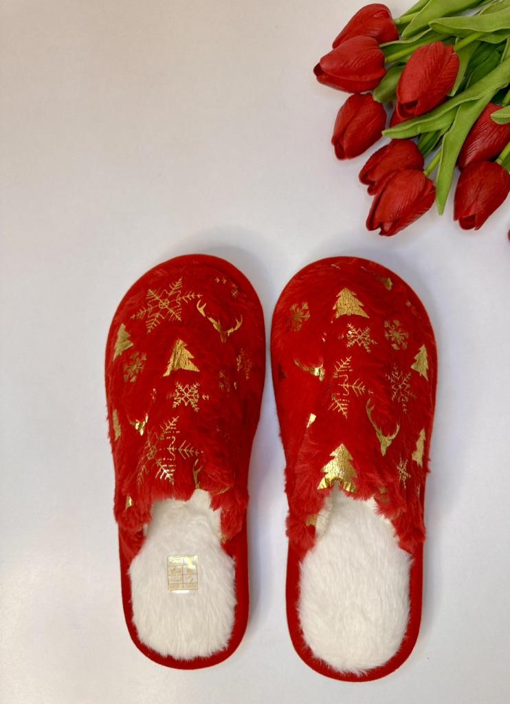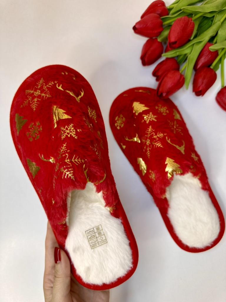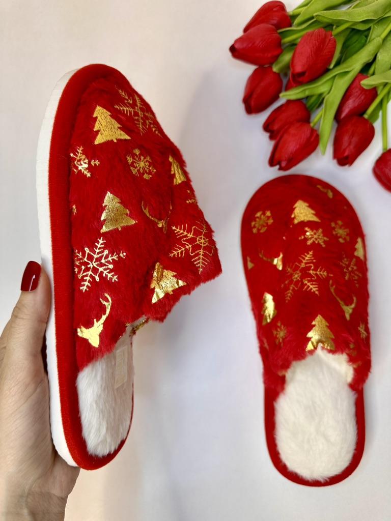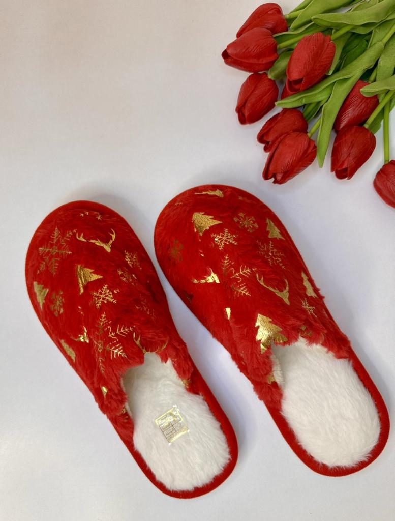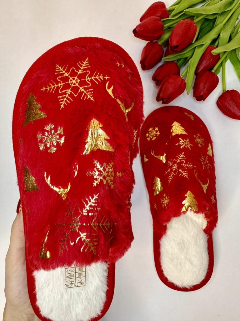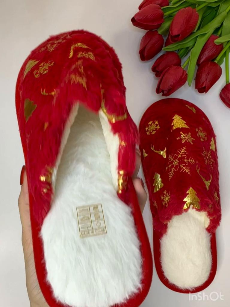 Christmas Pattern Plush Winter Slippers, Cozy & Warm Slip On Fuzzy Flat Shoes, Closed Toe Indoor Floor Slippers — buy online with free worldwide shipping!