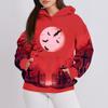 Women's Fashion Casual Pullover Hooded Sweatshirt Halloween Printed Long Sleeve Sweatshirt