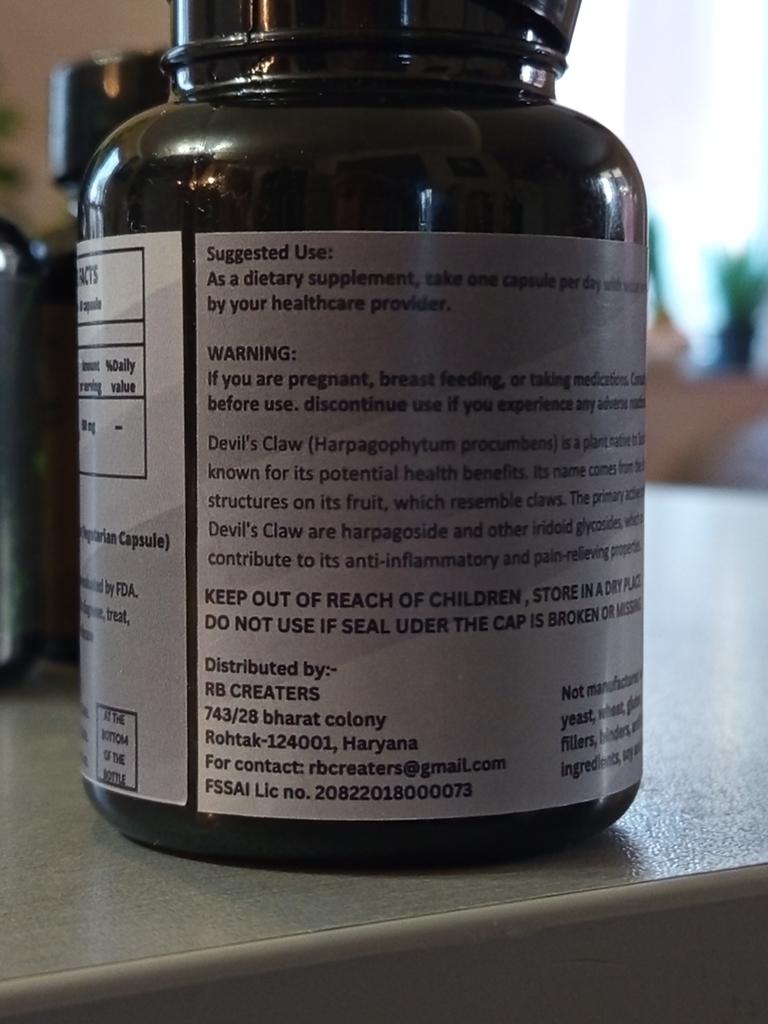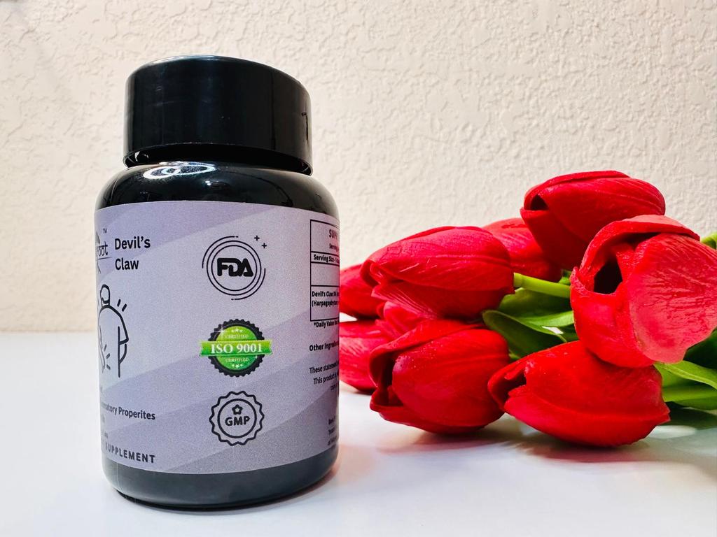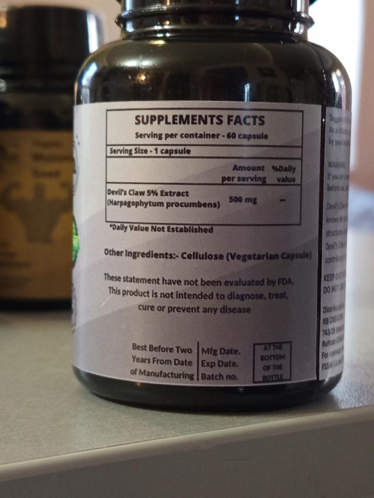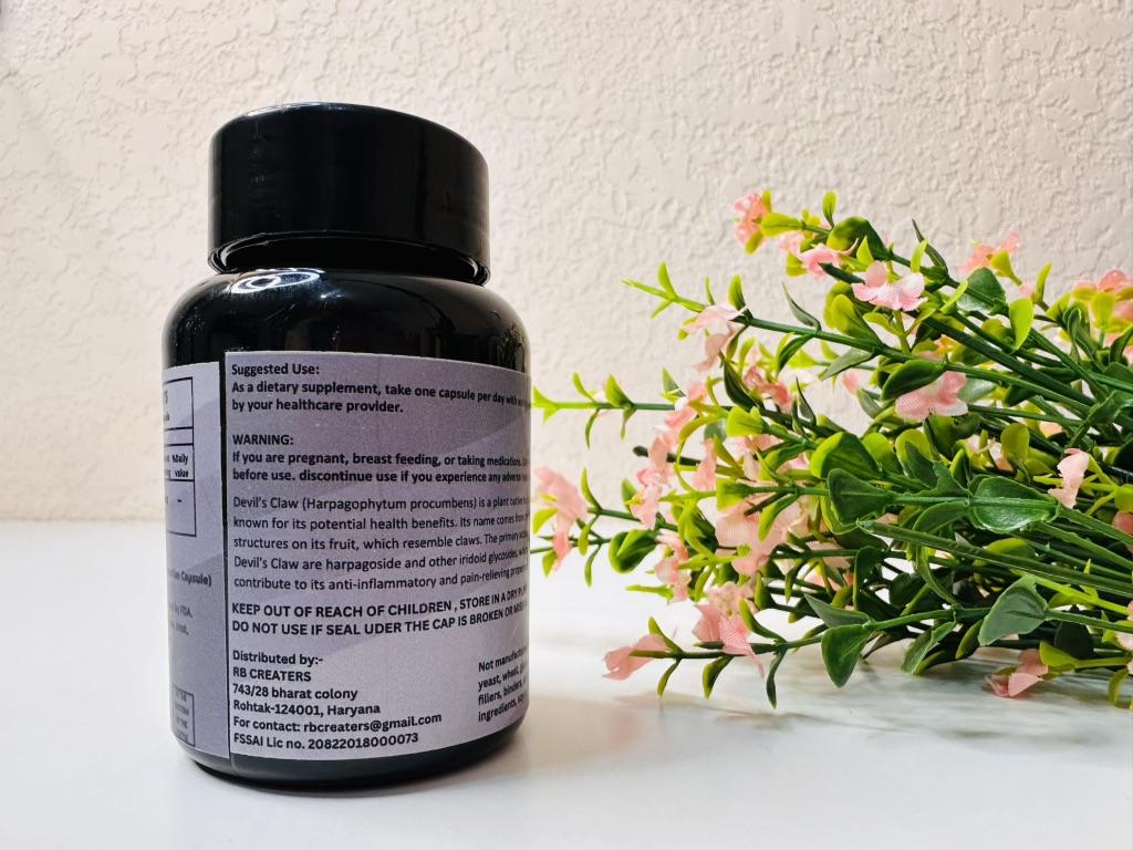 Devil's Claw Root Extract Capsules, India. Devil's Claw (Devil's Claw/Fragrant Martinia) is native to Africa. In its homeland, it is almost the main medicinal plant. It is used to improve digestion, relieve fever, and reduce pain. But doctors consider its main merit to be its high effectiveness in the treatment of arthritis. The therapeutic effect is possessed by the tubers of this plant, which contain: oils, complex phytoncides, natural bitters, flavonoids, glycosides, phenolic acids and many other complex compounds. Due to this, extracts and preparations made from Devil's Claw have an analgesic, anti-inflammatory and anti-arthritic effect. The drug is effective both in the treatment of young patients and people of venerable age.. It is also often used for muscle pain, tendon pain, back pain and lumbar pain, joint pain, gastrointestinal disorders and low acidity, to cleanse the body of toxins and simply to strengthen the immune system.