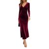 Flattering Design: Featuring a stylish V-neck and long dress with meticulous tailoring and pleat details, this dress elegantly conceals while enhancing your silhouette for a slimmer and chic look.