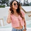 GMXIA Women's Vintage Casual Solid Color Print Spring Summer Hollow Short Sexy Crop Knitting Short Sleeve V-Neck Jackets & Coats — buy online with free worldwide shipping!