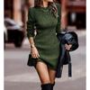 Autumn and Winter Women's Sweater Dress Solid Color Round Neck Long Sleeve Wrap Hip Sweater Dresses
