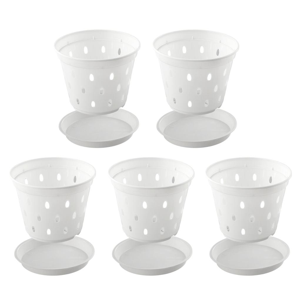 Pots 5.5inch Plastic Orchid Pots with Holes and SaucersSlotted 1/5 Pack