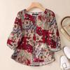 ZANZEA Women Casual O-neck 3/4 Sleeve Loose Print Cotton Blouse