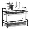 This two-level dish drying rack includes a cutlery holder, cutting board holder, and hooks for versatile utensil storage. Customize the layout by hanging or removing the cutlery basket and cutting board holder as needed, keeping your kitchen essentials neatly organized and easily accessible.