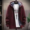 Men's Solid Color Thickened Knitted Jacket Winter Knitted Cardigan Casual Zipper Hooded Jacket