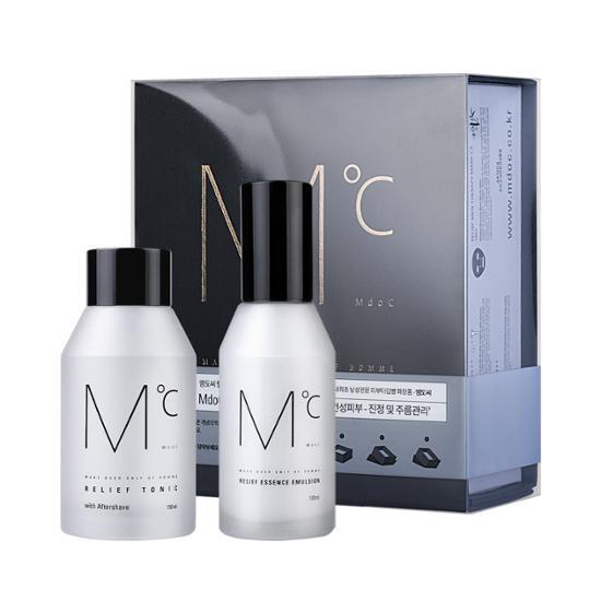 volume or weight of contents : ■ relief tonic x 150ml, relief essence emulsion x 100ml, relief essential mask 18ml x 2