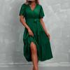 GMXIA Women's Fashion Summer Spring Solid Color Print Short Sleeve V-Neck High Waist Casual Dresses — buy online with free worldwide shipping!