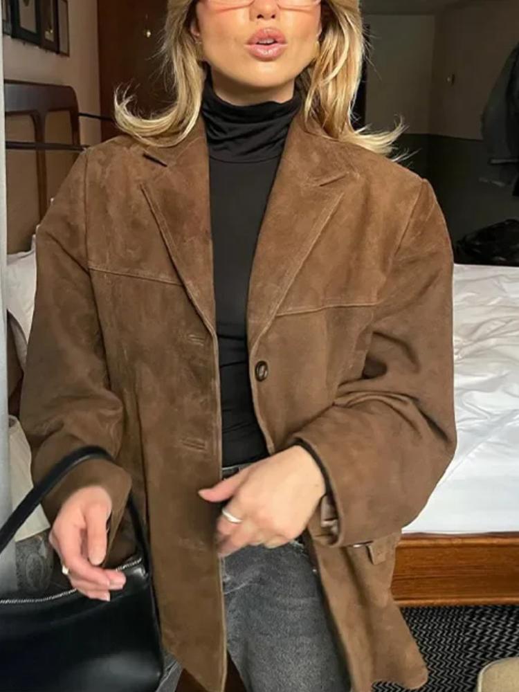 Loose Vintage Suede Jackets Women Lapel Single Breasted Long Sleeves Pockets Blazer Jacket Autumn Maillard Outerwears — buy online with free worldwide shipping!