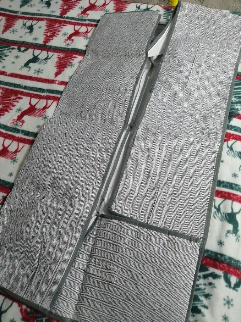A neat little box, not tall, but long. It is well suited for blankets, pillows, you can store down jackets.