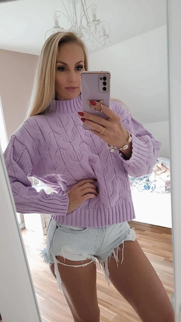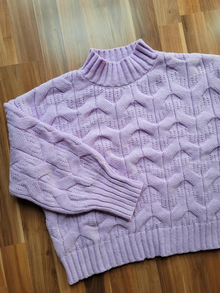* Knitted sweater with stand-up collar* ⭐⭐⭐⭐⭐ 💥𝗟𝗶𝗲𝗳𝗲𝗿𝘇𝗲𝗶𝘁 Exactly 14 days to Germany 💥𝗟𝗶𝗲𝗳𝗲𝗿𝘂𝗺𝗳𝗮𝗻𝗴 The delivery includes 1 sweater in the corresponding color and size. It is available in 2 different colors (baby blue and lilac) in sizes S to XL . I ordered the sweater in size S in purple. I wear size 36 to 38. I weigh 62 kg over 172 cm. Cup size 75D. Dimensions: 92-65-95 cm It fits me well, especially since it is cut rather large. 💥𝗤𝘂𝗮𝗹𝗶𝘁ä𝘁 The sweater is comfortable on the skin and does not scratch. The color is bright and exactly like in the pictures. It smells slightly of chemicals. The sleeves are slightly too short in length. Overall, the sweater is rather wide and longer on the stomach. The sweater can be combined very well with this color with white pants or skirts but also with blue jeans. I especially like that the knitting pattern. For material composition : 100% Polyester 💥𝗙𝗮𝘇𝗶𝘁 Pretty and soft sweater that goes great with jeans. You could order the sweater one size smaller as it is very generously and wide cut. ⭐⭐⭐⭐⭐ Thanks to joom and the seller. If you liked the review and the photos and video helped you make a decision, I would be happy if you follow me for many more reviews that will follow. 🎀🏃🙏😊