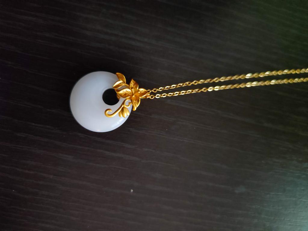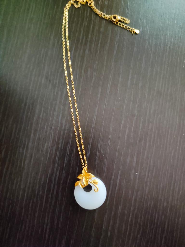 Flower Safety Buckle Necklace Women's Summer Simple Pendant Design Sense Niche Flower Branches Hetian Jade Collarbone Chain