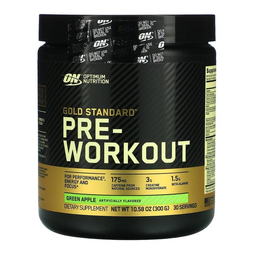 Pre-Workout Supplement Green Apple (Gold Standard Pre-Workout Green Apple) - is a food supplement that is intended for consumption by healthy adults. It contains caffeine from natural sources, as well as beta-alanine and creatine monohydrate.. This product is Informed Choice certified.