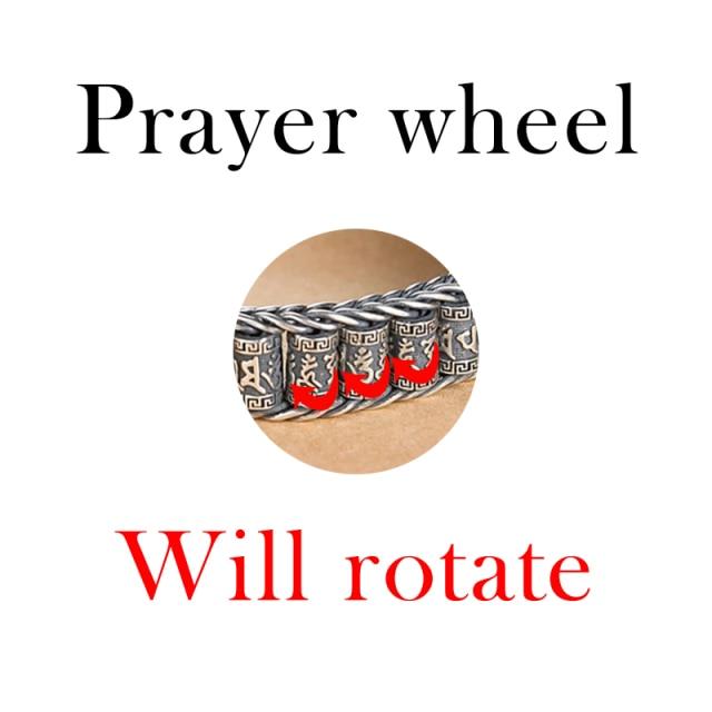 Men 'S Bracelet Simple And Generous Silver Bracelet Hand -Woven Six -Character Mantra Roller Silver Rotatable Silver Chain — buy online with free worldwide shipping!