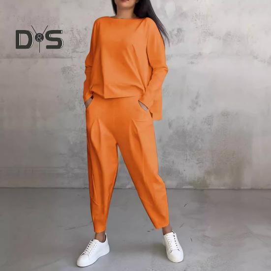 Versatile Design: Embrace a casual yet chic style with this two-piece set featuring a long-sleeved top and elastic-waisted harem leggings. The form-fitting cut flatters various body types, offering both style and comfort in one ensemble.