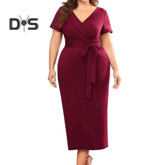 Elegant Design: Featuring a deep V-neck, short sleeves, and a strap design, this dress exudes an elegant and ladylike style that suits women of all shapes and ages.