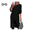 Women Fall Winter Dress Irregular Split Hem Knitted Loose Soft Thick Warm Long Sleeve Solid Color Mid Length Sweater Dress
