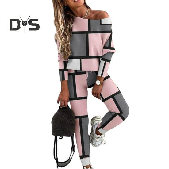 Introducing our Women's 2 Piece Casual Suit, designed for the sporty and stylish woman. This set includes a round neck sweatshirt with off-the-shoulder detail, long sleeves, and contrasting stitching. The elastic waistband and drawstring on the leggings ensure a comfortable fit.