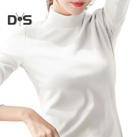 Women Fall Winter Top Half-high Collar Neck Protection Long Sleeve Solid Color Thick Warm Pullover Simple Style Slim Fit Windproof Lady Bottoming