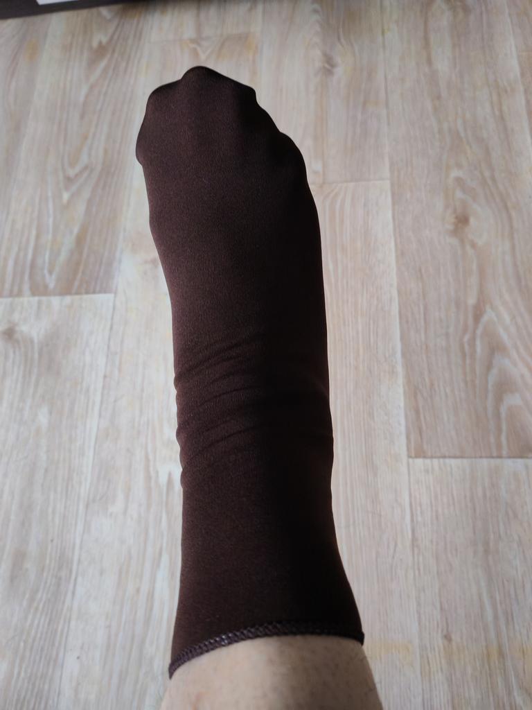 3 pairs of socks arrived. Black. There are no heels on the socks, so you can fit any size, there is no elastic. The upper part is overlocked, they do not stretch very well, so the thread will unravel. They will fit a small size. For me, size 39-40 is just right. In principle, you can stretch them on a larger foot, but then they will be a bit short at the ankle..