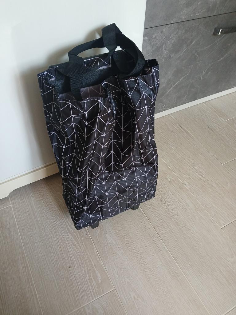 I'm taking the second one for my sister. Convenient, lightweight. The size is not very large - convenient for going to the store, no problems during bus rides. Stable. Can be pulled by the handle or carried on the shoulder empty