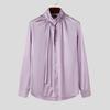 INCERUN Men High Neck Tie Up Ruffled Solid Shirts Casual Long Sleeve Tops