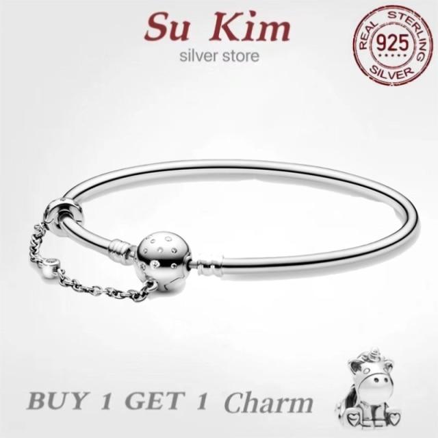 Sale 100 %Real 925 Sterling Silver Pan Bracelet For Women Fit Original Design Snake Charms Bangle Diy High Quality Jewelry
