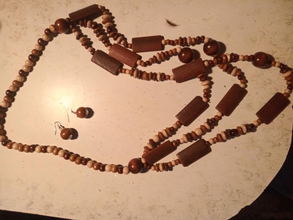 Bohemian Vintage Style Handcrafted Wooden Bead Necklace and Earrings Set, Boho Chic No Plating Fashion Jewelry for Daily — buy online with free worldwide shipping!