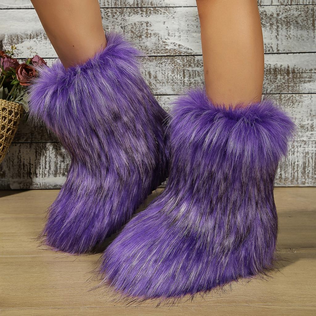 【Elegant Upper Design】Our Faux Fur Boots for Women boast a luxurious faux fur exterior,offering a soft and smooth touch.Expertly crafted with Italian stitching techniques,these boots ensure the fur remains securely attached,providing long-lasting wear.