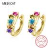 Real 925 Sterling Silver Simple Circle Rainbow Color Zirconia Hoop Earrings For Women Elegant Trendy Fine Jewelry Brincos