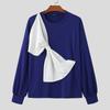 INCERUN Men Round Neck Big Bow Patchwork Long Sleeve Pullover Tops
