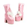 Lovely Lolita Mid-Calf Boots Women's Platform Thick Heels Sweet White Show Party Cosplay Ladies Fur Zipper Boots Pom-pom Pendant
