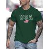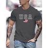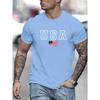 USA Print Short Sleeve T-Shirt For Male, Comfy Elastic Crew Neck Top, Men's Clothing For Summer Daily Wear & Workout — buy online with free worldwide shipping!