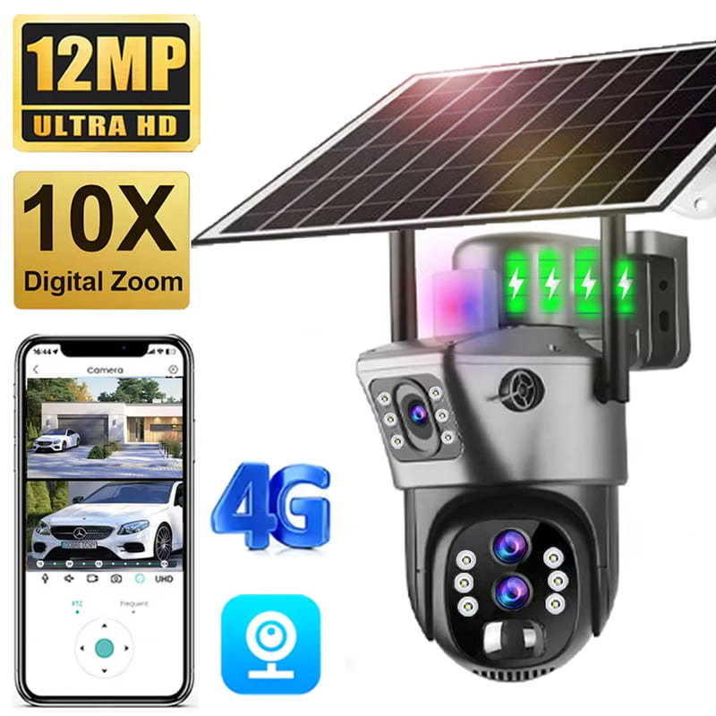 1. 6K dual lens dual-screen 4G solar powered battery PTZ camera